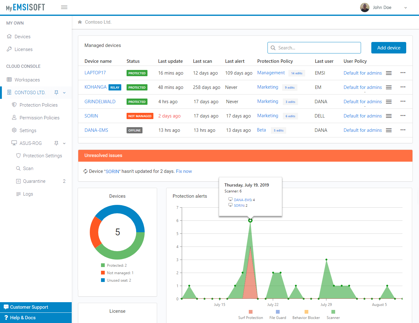Administre su negocio fácilmente con la Consola Web de Emsisoft